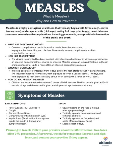Measles is a highly contagious viral illness that typically begins with fever, cough, coryza (runny nose), and conjunctivitis (pink eye), lasting 2-4 days prior to rash onset. Measles can cause severe health complications, including pneumonia, encephalitis (inflammation of the brain), and death.